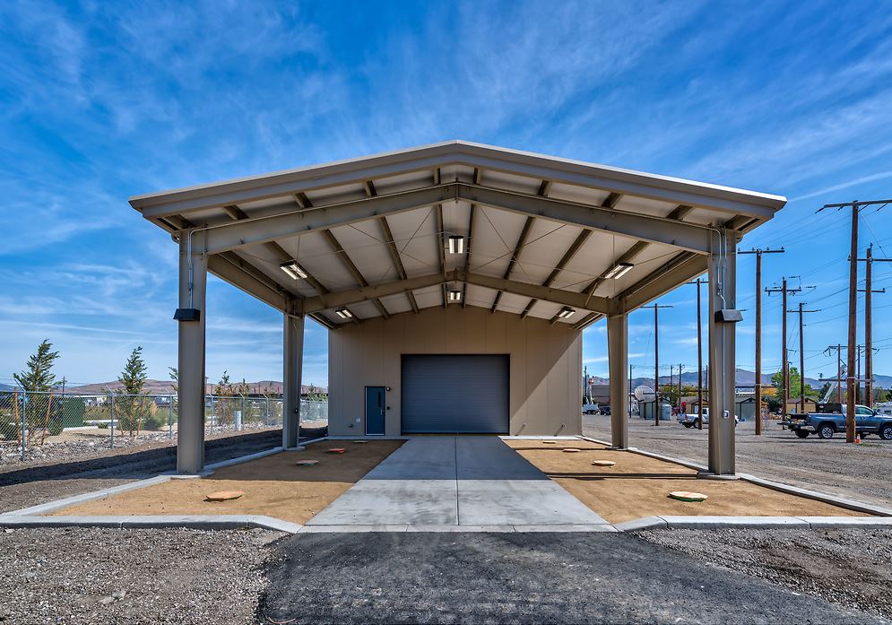 The NV Energy Classroom and outdoor training area building was constructed for training NV Energy linemen. The building is constructed out of insulated metal wall panels on walls and roof for efficient building envelope and is 4,900 square feet total. 3,255 square feet of the building is for the classroom and the remaining area for outdoor training. A metal partition wall separates the indoor portion from the outdoor training area.